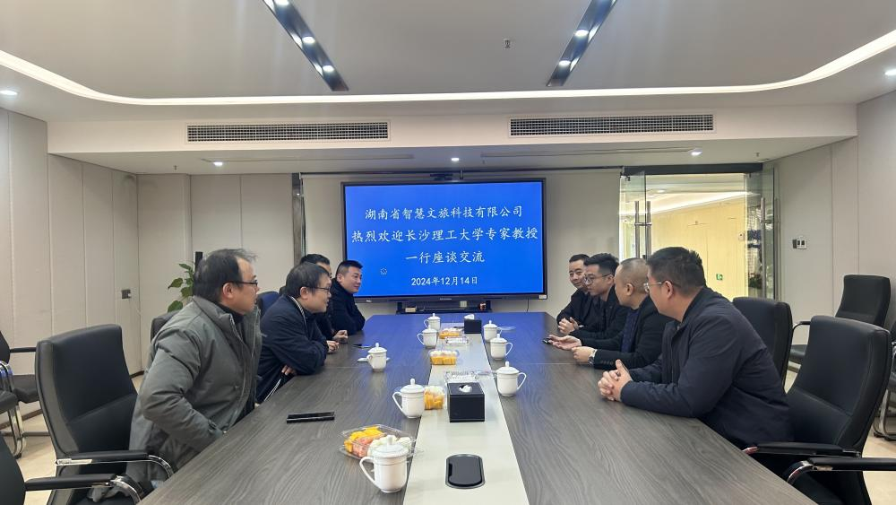 2024年12月16日,开云kaiyun体育经济与管理学院副院长何昊、MBA教育中心主任扶缚龙、创新创业教育办公室副主任朱晋及MBA联合会成员一行赴湖南智慧文旅科技有限公司进行访问与学术交流。此次访问旨在加强学术合作与实践对接,推动产学研合作,探讨智慧文旅发展和创新管理模式。