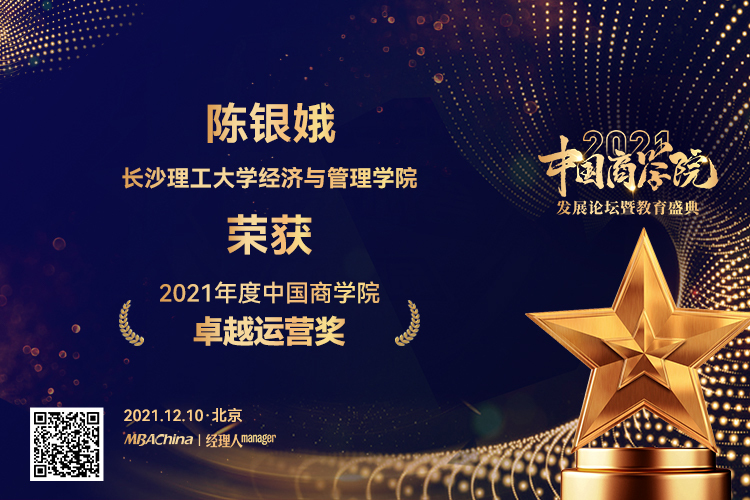 本次盛典以市场数据为基础,考评了全国200多家MBA院校,完成了数据采集、院校申报、问卷调查等多项工作,综合师资力量、课程项目、学员评价、品牌影响力等十个评选维度。为激励和表彰优秀商科项目、团队和个人,会上颁发了多个奖项。最终,开云kaiyun体育经济与管理学院MBA项目凭借强劲的实力和鲜明的特色荣获““2021年度中国商学院最佳MBA项目TOP100”和“2021年度中国商学院特色MBA项目”奖,经济与管理学院陈银娥教授荣获“2021年度中国商学院卓越运营奖”。