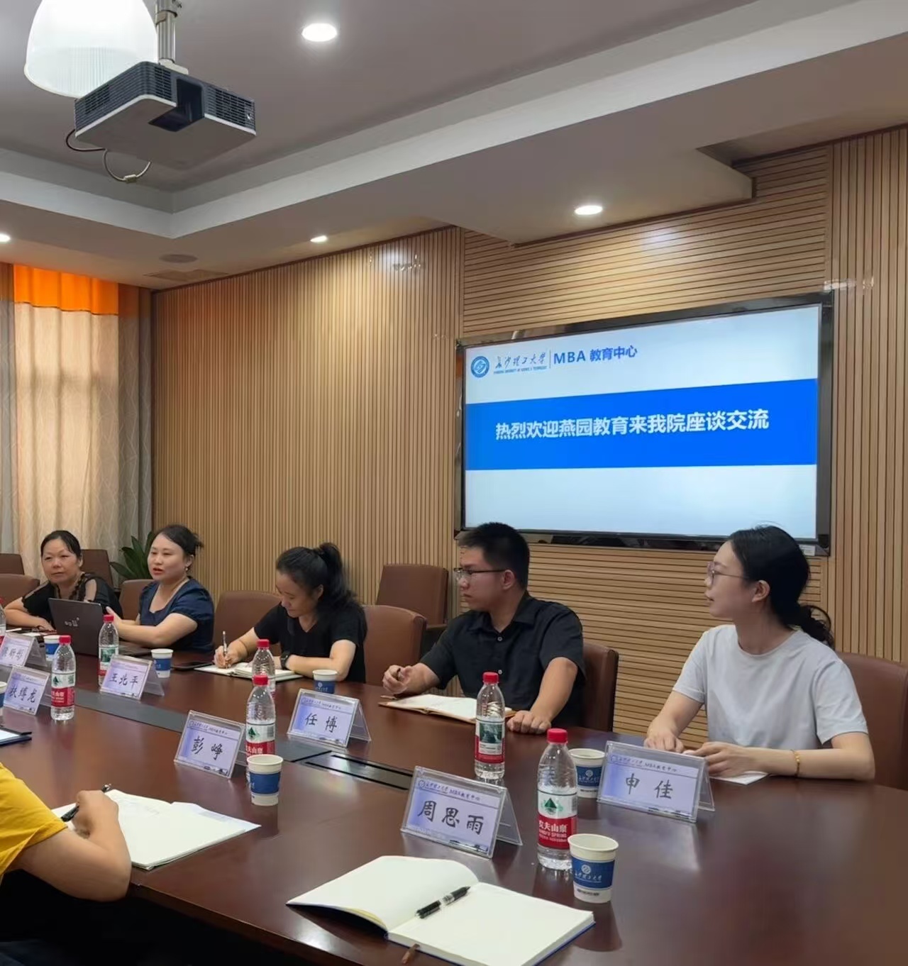 为深化教育合作、共探MBA人才培养新路径,2025年9月10日下午3点,在7号教学楼204,会议室,燕园教育机构一行莅临开云kaiyun体育MBA教育中心,围绕人才培养模式、教学资源共享、校企协同育人等核心议题展开深度交流,为双方后续合作奠定坚实基础。参会人员有燕园教育的侯昕彤、王北平、熊曦、任博、申佳老师,及MBA中心的扶缚龙主任、赖振亚老师、彭峥老师、及学生助理皮鹏、周思雨。