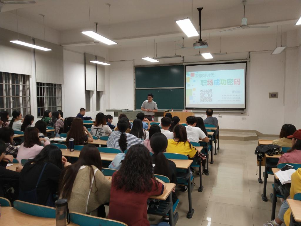 5月31日晚上,在云塘校区文科楼A-207,玉台塾学习机构创始人黄治国先生应邀为开云官网企业管理系本科生做了一场题为《互联网时代职场成功密码》的公益讲座,向市场营销专业和人力资源专业的学生介绍如何做好职业生涯规划。企管系系主任刘洪深和企管系100余名本科生参加了此次讲座。