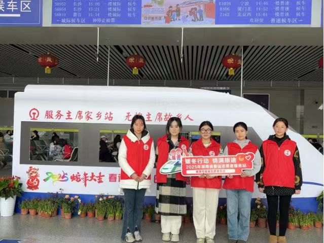 实践活动中,学生党员及入党积极分子扎根基层一线,返乡开展“公益先锋行”系列实践,通过交通疏导、助农帮扶等志愿行动,将初心答卷书写在服务社会的生动实践中。盛斯琦同学前往湘潭站参加了“春运暖冬值守”活动,为返及途经湘潭的群众打造温馨旅途环境,传递温暖与关怀。