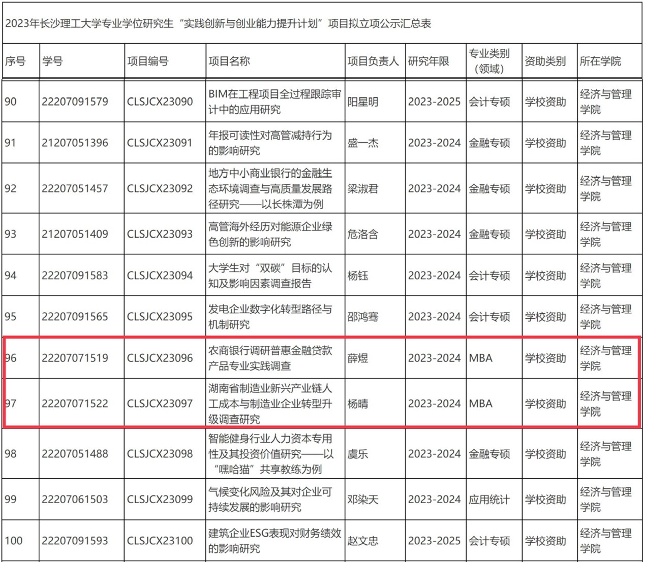 其中,经管学院共立项11个。开云官网22级MBA学员薛煜、杨晴申请的项目获得审批,成功立项为学校资助项目。