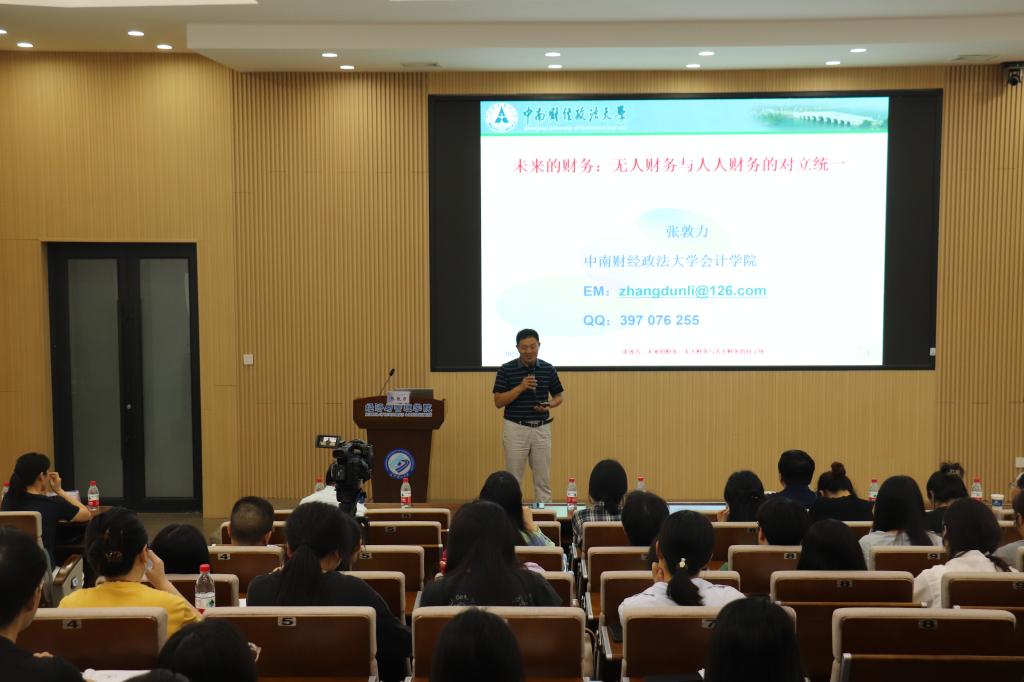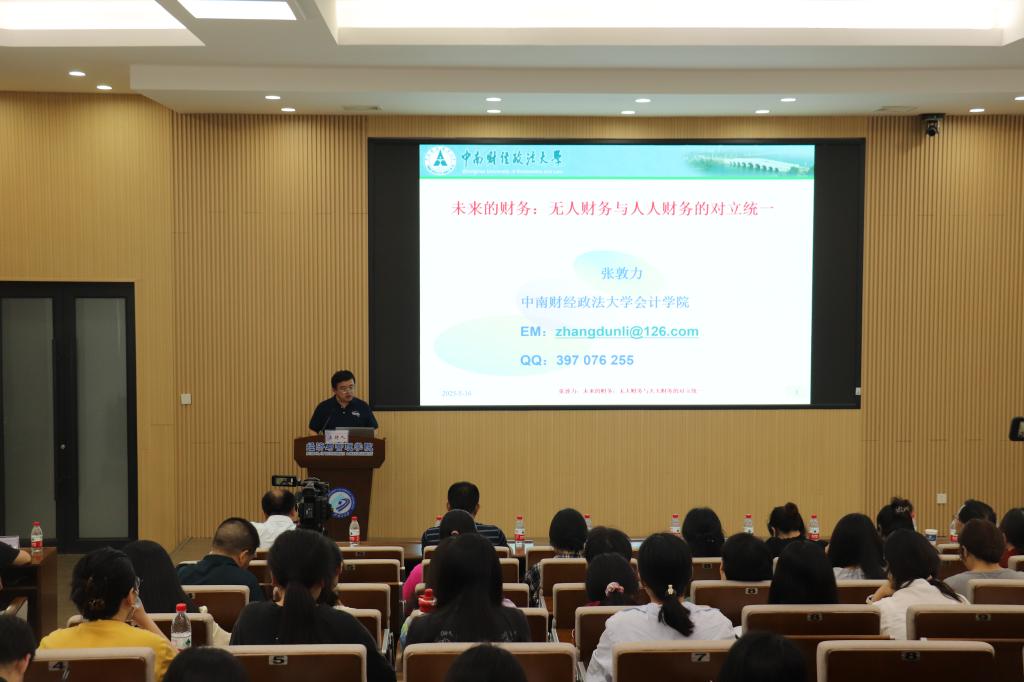 2025年5月16日下午,由中国会计学会、全国会计专业学位硕士研究生教育指导委员会主办,开云kaiyun体育经济与管理学院承办的“MPAcc会计名家公益大讲堂”在金盆岭校区经管大楼100报告厅举行。本次大讲堂邀请到中南财经政法大学张敦力教授,围绕“财务的未来:无人财务与人人财务的对立统一”展开深入探讨。经济与管理学院院长彭新宇及140余名师生参加了本次讲座,讲座由学院副院长王治主持。