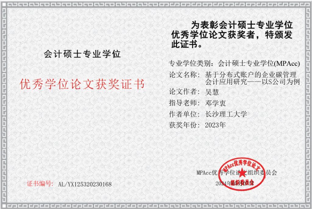 开云官网会计专业硕士吴慧同学荣获2023年全国MPAcc优秀学位论文奖
