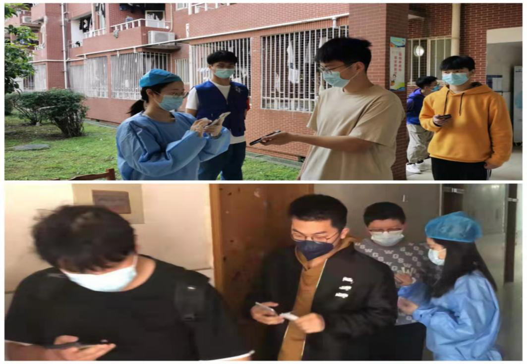 新入职党员陈洁说,“穿上蓝色防护服,戴上白色橡胶手套和蓝色防护帽的这一刻我才感受到防疫志愿者应有的担当。我决心一定要做好医生的左右手,做到全神贯注,和时间赛跑,不拖队伍的后腿。我一边撕着拭子,一边注意医生手上的动作,等做完一个学生之后,马上上前给医生的手上喷洒酒精,做到“一测一消”,然后再给医生递上准备好的拭子。当学生礼貌的说一句“辛苦了,谢谢。”,这一瞬间我觉得很温暖,所有的辛苦都觉得释然了。”