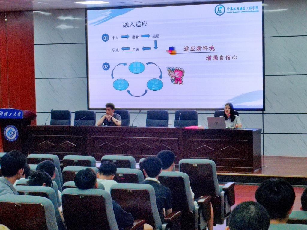 随后,两位老师从“融入适应”、“个人规划”、“日常管理”三个方面展开了详细的讲解,让同学们对个人成长规划有了更深刻的理解。同时,他们也向同学们提出了殷切的期望和要求,希望他们能够尽快适应新的学习环境,发挥自己的优势,不负青春、不负韶华。