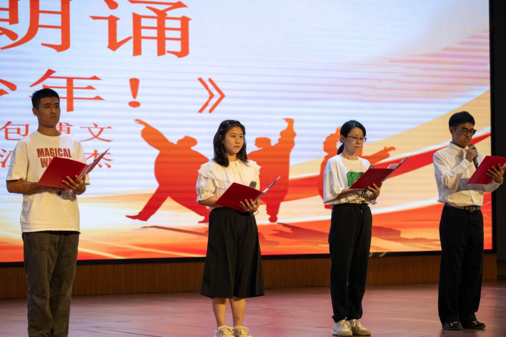 接着,现场播放了杰出校友录制的祝福视频,激励同学们在大学生涯里努力耕耘,成长为时代栋梁。随后,班主任代表和下班干部代表带来了散文诗朗诵《奋斗吧!少年!》,承载着对同学们的殷切期望与美好祝愿。最后,大数据2402班郭宜达作为新生代表发言,他从立志、奋斗、自强三个方面讲述了青年的使命与担当,呼吁全体同学传承长理精神,争做时代新人。