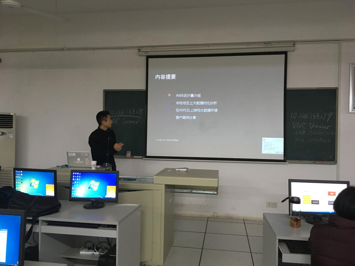 1月19日下午,亚马逊(华中)技术售后中心严红时校长重点介绍了亚马逊在云计算、大数据的技术及在市场上的应用,且现场在线演示了亚马逊云计算技术。