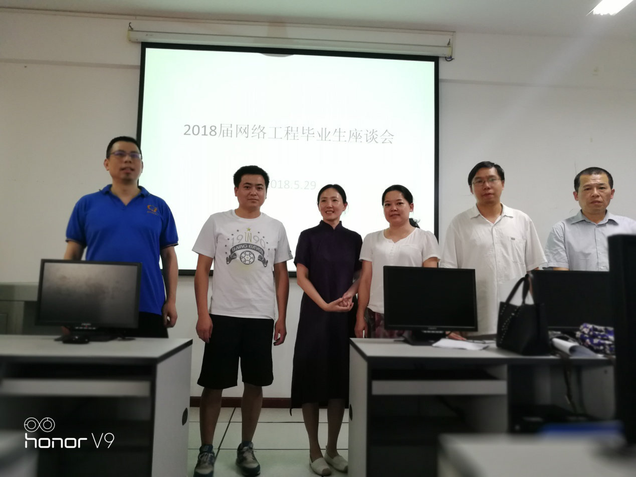 2018年5月29日下午4点,在金盆岭校区7教501教室,计算机与通信工程学院网络工程系举办了2018届毕业生座谈会。网络工程系廖年冬、蔡必野、史长琼、龙际珍、谢晓巍、余飞老师,网络工程系2018届在校60余名毕业生参加了此次会议,会议由廖年冬老师主持,本次会议采用现场讨论和问卷调查两种形式进行。