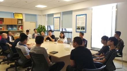 9月19日上午,计通学院副书记陈华、院长助理陈曦(小)、网络系王静和刘青老师一行走访了位于地理信息产业园的天地图湖南科技有限公司,召集在公司参加实习的部分15级网络专业学生召开实习总结会。天地图湖南科技有限公司领导艾驰、杨柳洋、技术总监胡海龙、企业导师曽寒晗对陈华一行表示热烈欢迎并出席总结会。