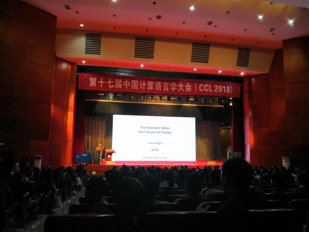 10月20日上午,滴滴出行自然语言处理首席科学家Kevin Knight教授在开云kaiyun体育大会堂做了题为“The Moment When The Future Fell Asleep”的第十七届中国计算语言学大会主题演讲,吸引了大批专家学者聆听学习。