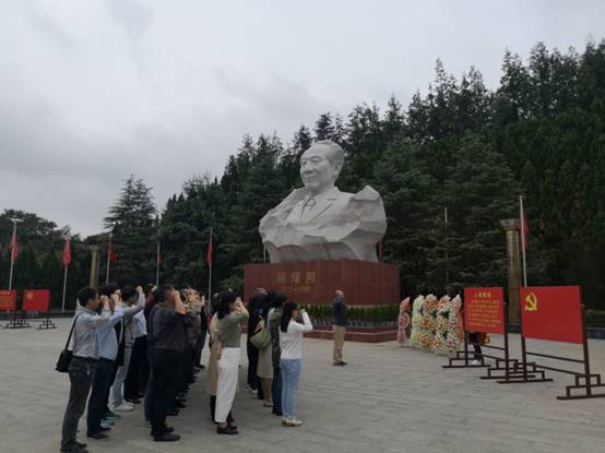 在参观完耀邦同志故居后,全体党员来到胡耀邦同志塑像前,在院党委书记甘为的带领下,面对党旗,重温了入党誓词,向党表达了不忘初心、牢记使命的信念和决心。