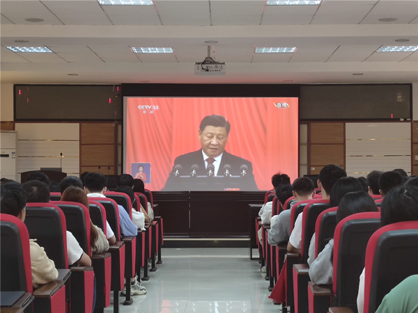 党的二十大是中国共产党进入全面建设社会主义现代化国家、向第二个百年奋斗目标进军新征程的重要时刻召开的一次十分重要的代表大会,是全党全军全国各族人民政治生活中的大事。在观看直播现场,广大师生边看边做记录,不时以热烈的掌声回应大会精彩报告。