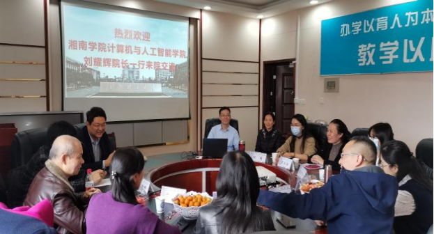 11月24日下午,湘南学院计算机与人工智能学院刘耀辉院长一行来我院调研开展工程教育专业认证方面的交流。我院党委书记孔伟红,院长张锦与刘耀辉院长一行交谈,副院长蔡烁主持交流与调研会。