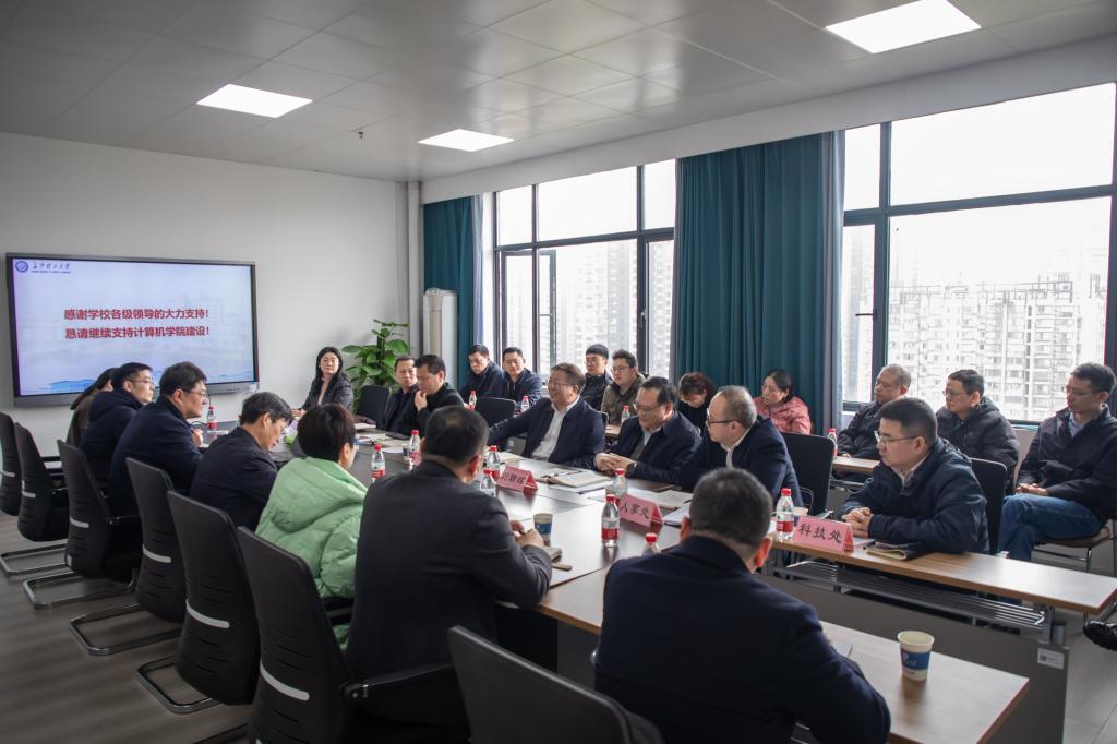 3月14日上午,校党委书记付宏渊带队来到计算机学院调研指导工作。校党委委员、副校长刘朝晖,党政办、人事处、教务处、科技处、研究生院负责人陪同调研,计算机学院全体班子成员、教授委员会主任及各系(科室)主任、支部书记参加了会议。