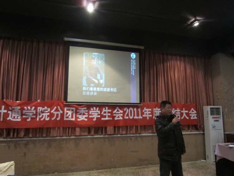2011年12月28日晚,计通学院在汀香园三楼中西餐厅隆重举办了分团委学生会2011年度总结表彰大会,出席此次晚会的领导有计通学院党委副书记方碧波副教授,还有院学工办主任伍接朝、分团委书记任志祥老师、学工办邵巧艳老师、俞敏老师。全体分团委学生会干部参加。