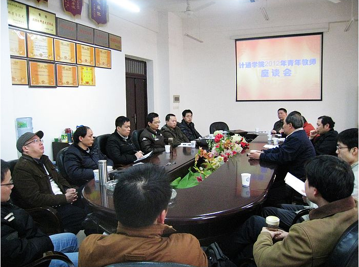 3月13日下午,在学院B103会议室召开了“计通学院2012青年教师座谈会”。会议有学院领导班子全体成员、70年以后博士和35岁以下在读博士近30人参加。