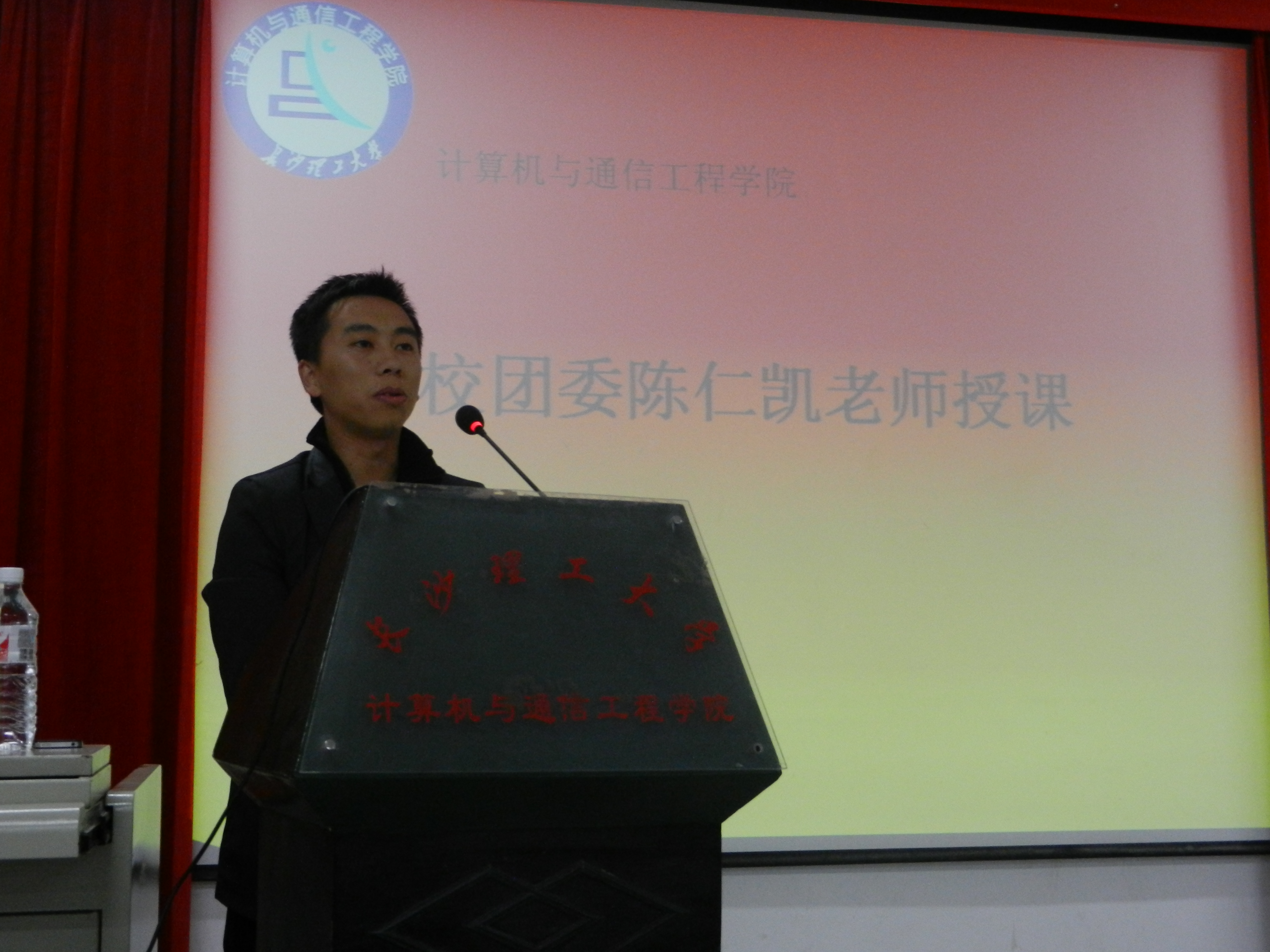 为提高学生干部能力素养,树立学生干部模范带头进带动后进,以部分带动整体,引领广大学生深入参与2012-2013学年主题教育活动,全面发展,10月30日晚,计算机与通信工程学院邀请校团委陈仁凯主任在理科楼B311为全体学生干部进行2012-2013学年首期干部培训,授课题目为《学生干部的思想力和执行力》。学院党委书记徐学军教授,副书记方碧波副教授到会进行指导,关工委副主任雷理成老师,学工办禹敏老师、张智敏老师出席。