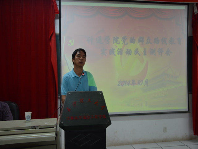 刘书记在讲话中表示,计通学院根据党委的要求,严格按照活动总体部署,强化学习教育,筑牢思想理论基础,广泛征求意见,认真查摆“四风”表现,坚持实事求是,开展谈心交心,深刻剖析根源,认真撰写对照检查材料,认真做好各项工作。学院在完成教育实践活动三个环节基本工作后,对领导班子和党员领导干部个人开展情况进行民主测评,并对整改落实、建章立制工作进行检查和评估。