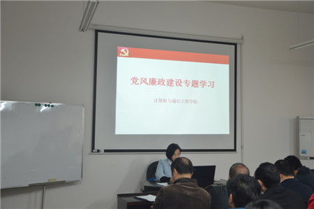 1025日下午,计通学院在理科楼B302召开党风廉政建设专题学习会,学院中层以上干部全部参加学习,会议由方琼主持。