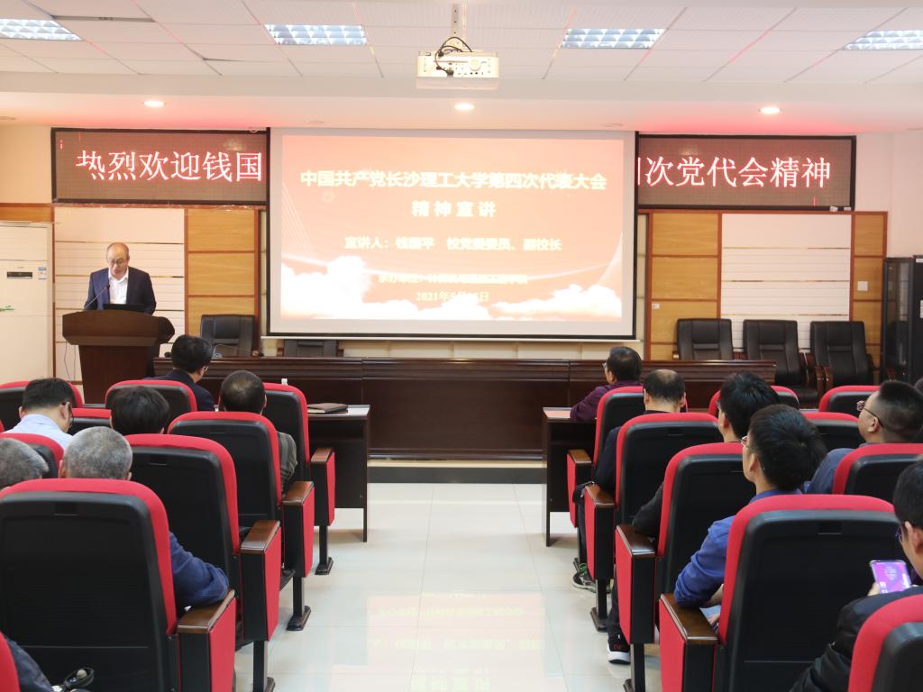 5月25日下午,学校党委委员、副校长钱国平在理科楼B311为我院师生宣讲学校第四次党代会精神,学院党委书记刘宏伟主持报告会,全体教职工及学生代表参加。