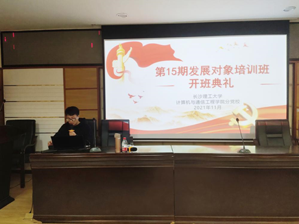 计通学院学生党总支于11月15日晚19点于云塘校区理科楼B311举行了第15期发展对象培训班开班仪式暨开班第一课。本次开班仪式由分党校负责人胡航宇主持,第15期发展对象培训班班长左勇勇和副班长杨孜组织,第一课由马克思主义学院任志祥主讲,共117名发展对象参加。
