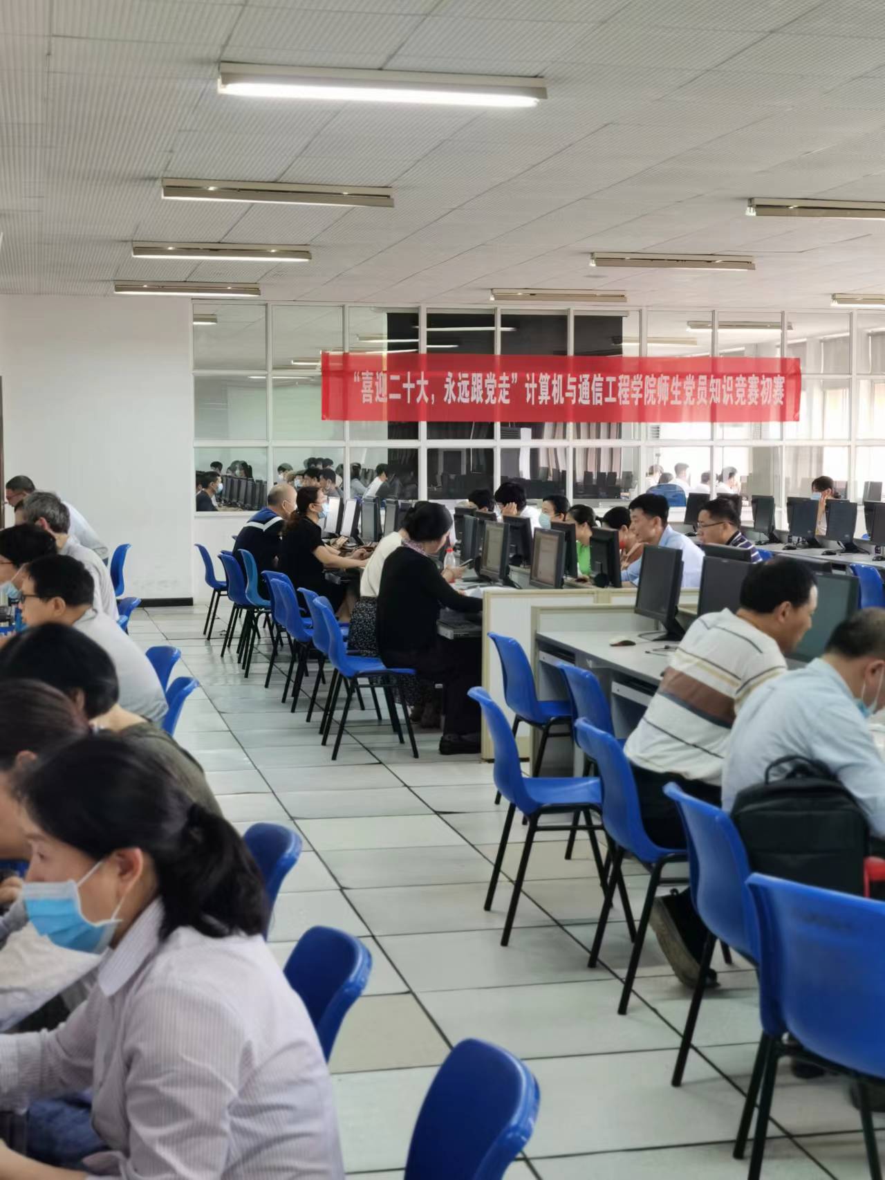 为迎接党的二十大,切实地贯彻落实两会精神,加深广大党员对中国共产党的了解以及对时事政治的关注,4月26日下午,计通学院党委组织全体教师党员、学生党员共360余人在云塘校区综合实验楼开展了“喜迎党的二十大,永远跟党走”师生党员知识竞赛初赛。
