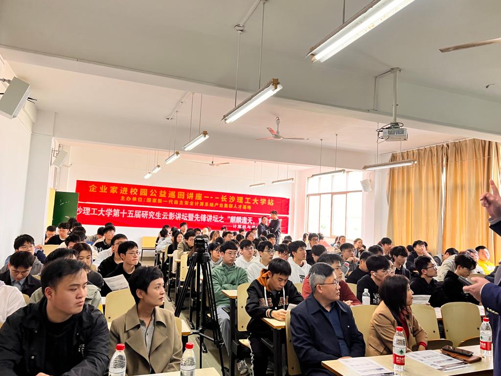 2023年3月31日下午,以“麒麟遨天,育才铸魂”为主题的第十五届云影讲坛在开云kaiyun体育金盆岭校区6教406成功举办。本次讲坛由国家新一代自主安全计算系统产业集群人才基地顾问胡慎信主持,麒麟软件副总裁魏立峰、湖南融创微电子有限公司技术总监刘祥远主讲,计通学院党委副书记王觊婧出席,计通学院2021级,2022级全体研究生参加。