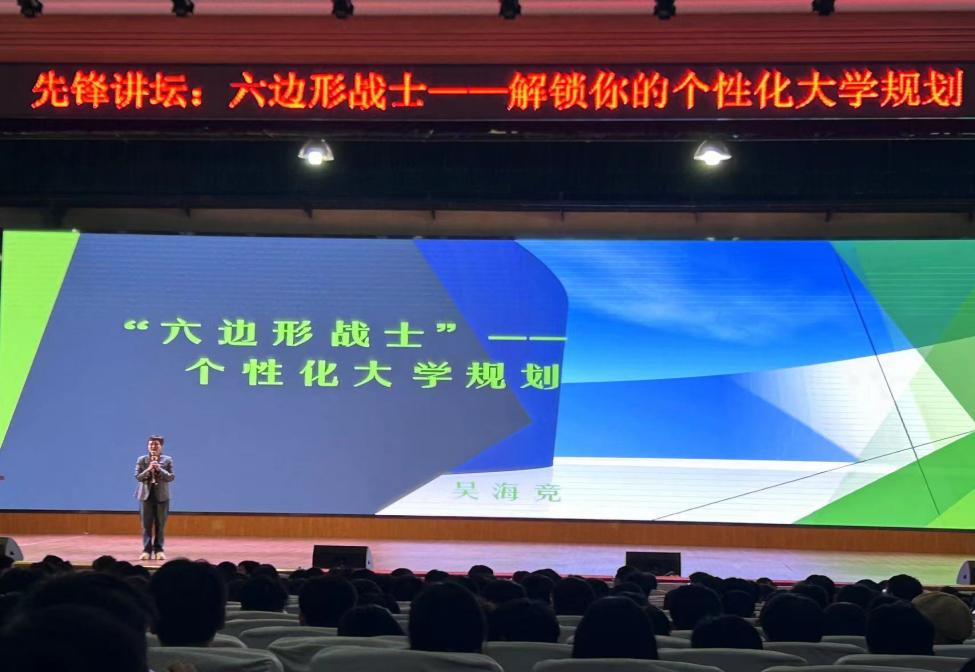 2024年3月22日晚19:00,开云kaiyun体育计算机与通信工程学院先锋讲坛于金盆岭校区五教大礼堂成功举行。本次讲座邀请到了湖南大学湘雅二医院医学表观基因组学湖南省重点实验室副主任、教育部长江学者奖励计划学者、湖南省杰出青年、湖湘青年英才、博士研究生导师吴海竞研究员做了以“六边形战士--解锁你的个性化大学规划”为主题的精彩讲座。本次讲座主要面向计通学院第十四期青马班学员、23级全体学生,共千余人参加了此次讲座,讲座由计通学院党委副书记王觊婧主持。