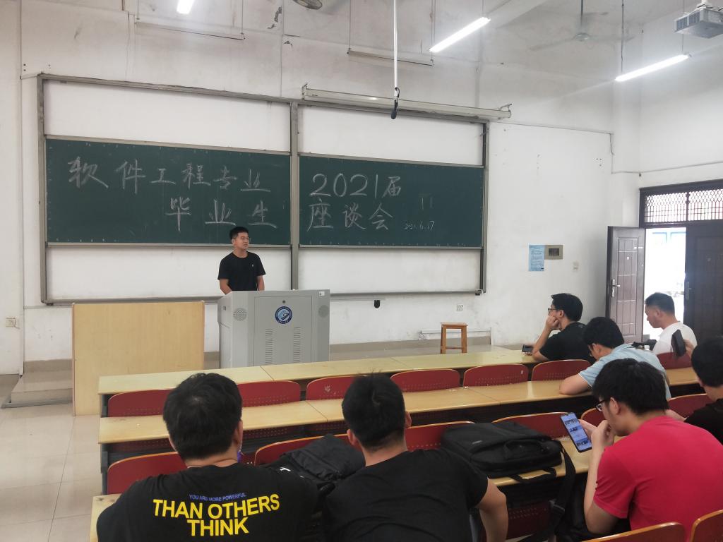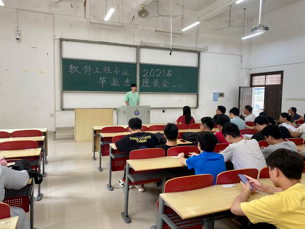 2021年6月17日上午11时30分,计通学院软件工程系在云塘校区工一教学楼A106教室召开了2021届软件工程专业毕业生座谈会。软件工程系邓泽林、邓广慧、徐超、叶吉祥、唐小勇、湛新霞、黄园媛、阮昌等教师代表,软件工程专业2021届120余名毕业生参加了此次座谈会。