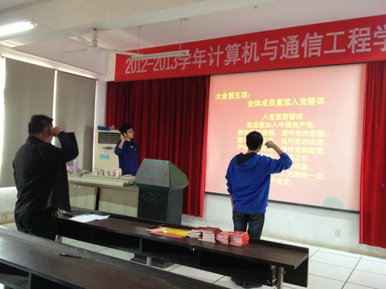 2013年11月19日,计通学院在理科楼B311教室隆重召开预备党员转正大会与党员发展大会。院党委副书记方碧波副教授出席,本学期全体学生入党发展对象与预备党员转正对象参加。大会由学工办任志祥老师主持。