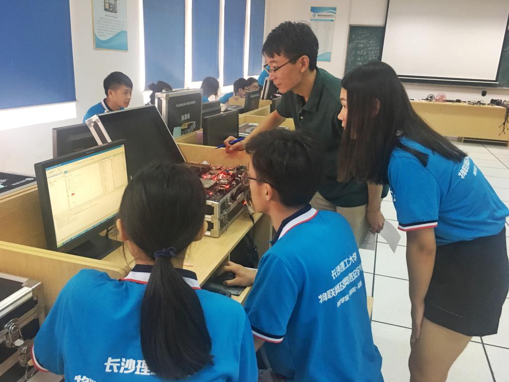 在比赛前期,计通学院物联网实验室安排人员值班,参赛队员可以熟悉相关软硬件平台,做好充分的赛前准备。2017年9月9日,大赛在理科楼B404开展。经过初步遴选,参加本次比赛的共有16支队伍,其中8支为技能赛队伍,另外8支为创意赛队伍。上午9:00,技能赛正式开始,要求在指定时间内,各参赛团队需在指定的软硬件平台上, 发挥各项软硬件技能, 完成一套可实现组委会指定功能的系统。拿到题目后,各小组进行了明确的分工,有的同学实际操作,还有同学根据实验过程写出论文。每组成员都争分夺秒地进行着自己手中的工作。随着比赛紧张而有序地进行,各组也陆续完成了自己的题目,王静、史长琼老师检查了各队伍的实验现象,并收集了各组的实验论文。经过两个半小时,比赛顺利结束。