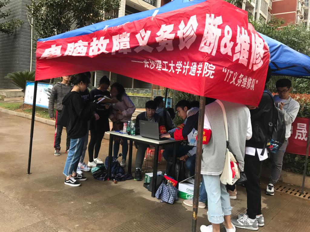 “IT义务维修队”的“义诊”活动,每年坚持举行,已服务过丽发新城、阳光一百等小区;也曾驻点湖南女子学院等学校开展义务维修。这既实现了专业服务社会的价值,又体现了大学生的社会奉献和担当。维修队的热心服务、技术人员的专业指导,赢得了服务对象的充分肯定,不少居民表示,希望与维修队建立联系,今后还有需要,还希望能邀请维修队上门帮助。