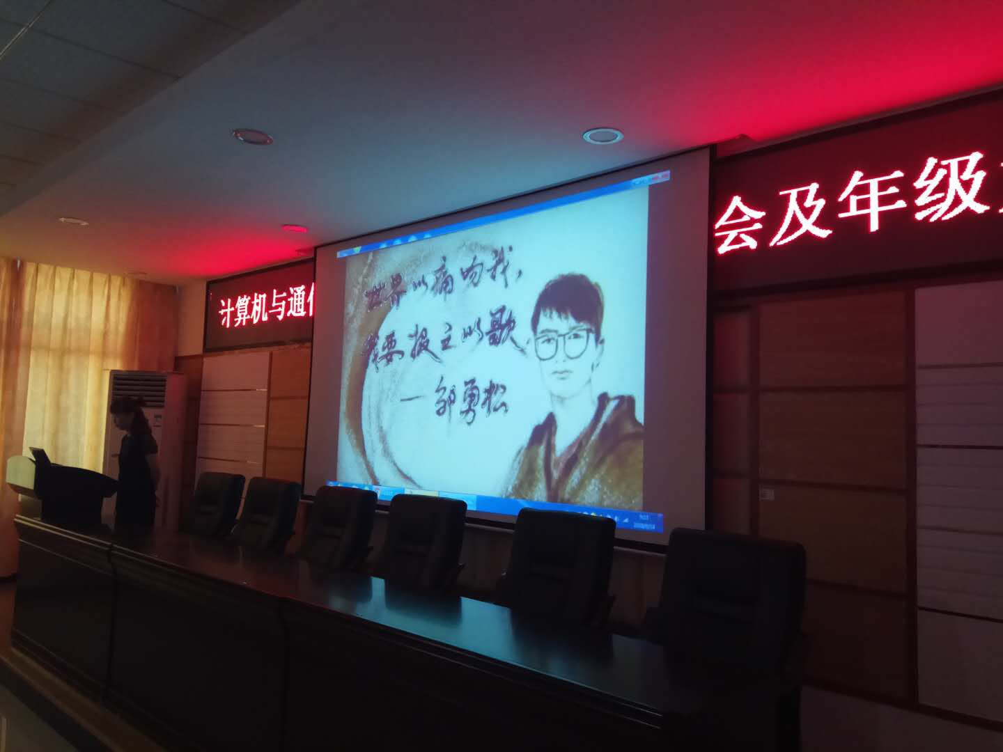 2018年9月14日下午,计通学院18级研究生在理科楼B311召开了以计通学院邹勇松事迹报告大会及年级大会。此次大会由辅导员易亭亭主持,18级同学全员到会参与。