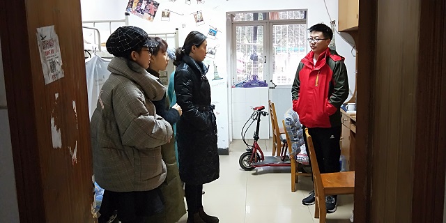 2月23日早上9点半,学院党委副书记陈华,学工办主任肖苹宁、研究生辅导员易亭亭、15级辅导员聂静以及16级辅导员王建新一行来到行健轩一、二栋学生宿舍,看望新学期返校的同学们,查看学生到校情况以及寝室卫生。