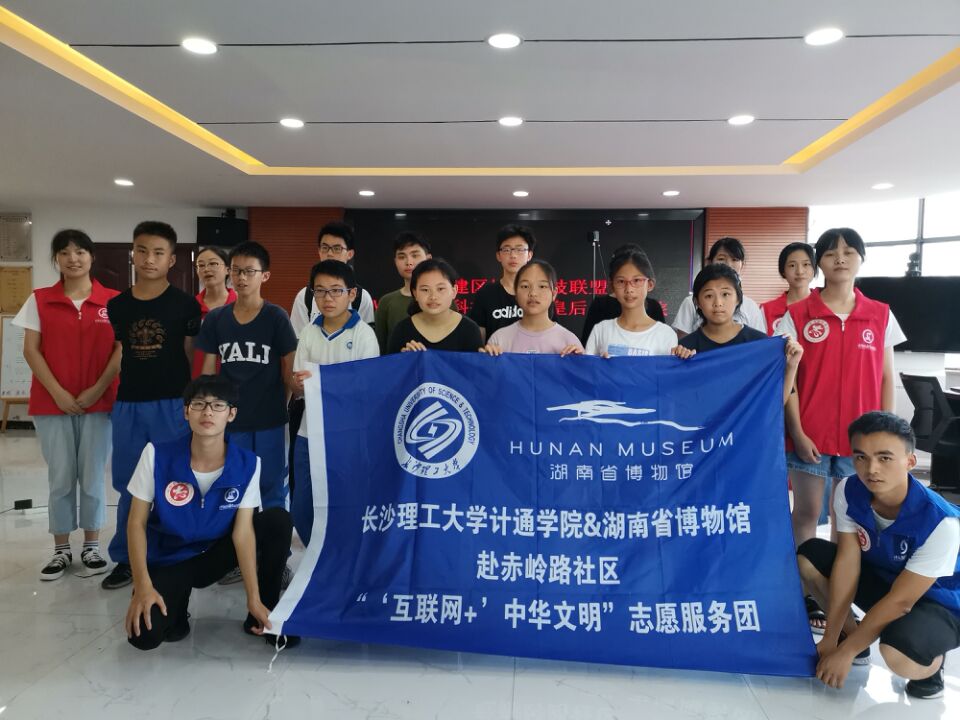 7月23日下午,开云kaiyun体育“传递文化之美,传播科技之光”馆校合作志愿服务团队抵达长沙市赤岭路社区活动体验地点。