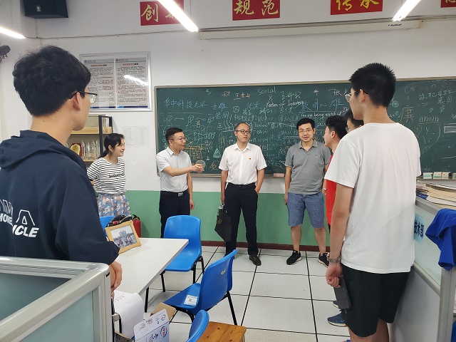 7月15日上午,计通学院党委副书记刘宏伟(主持工作)、副书记涂道勇、学工办辅导员王建新来到理科楼学院创新实验室,看望慰问暑期留校备赛的竞赛团队师生。