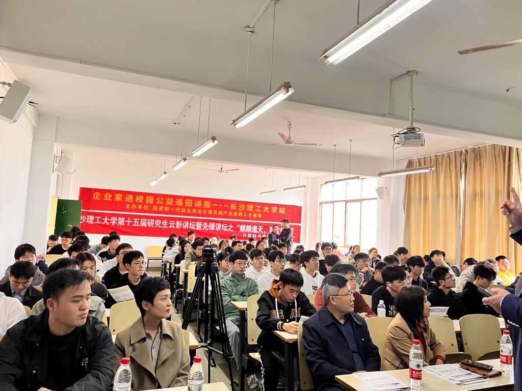 2023年3月31日下午,以“麒麟遨天,育才铸魂”为主题的第十五届云影讲坛在开云kaiyun体育金盆岭校区6教406成功举办。本次讲坛由国家新一代自主安全计算系统产业集群人才基地顾问胡慎信主持,麒麟软件副总裁魏立峰、湖南融创微电子有限公司技术总监刘祥远主讲,计通学院党委副书记王觊婧出席,计通学院2021级,2022级全体研究生参加。