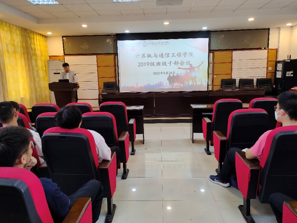 为部署后续的毕业相关工作,保障同学们顺利毕业,2023年5月24日,计算机与通信工程学院在理科楼B311召开本学期第二次毕业年级班级干部会议,会议由年级辅导员郑国义主持,助理辅导员刘俊和各班主要干部参加。