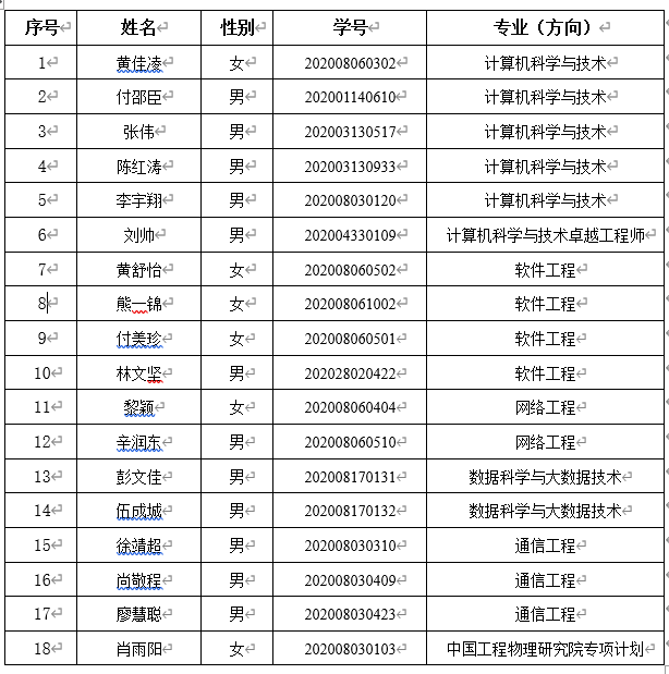 计算机与通信工程学院拟推荐2024年免试攻读硕士研究生名单公示
