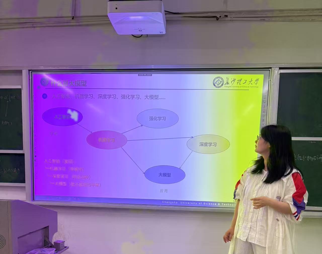 2025年5月16日下午2:30,计算机学院夏云芝博士在金盆岭校区6教203教室为计算机学院及部分外院本科生作了一场题为“浅析人工智能与大模型:原理、应用及未来挑战”的通识讲座报告。