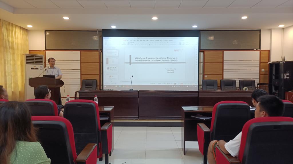 6月29日下午3点,理科楼B-311,湖南大学杨亮教授受邀为计算机与通信工程学院做了一场题为“可重构智能表面技术辅助的无线通信系统研究”的报告。报告主要就RIS技术的应用问题,介绍课题组的一些研究工作。学院部分师生听取了报告。