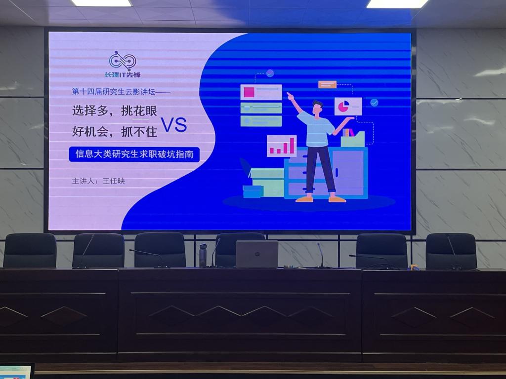 为帮助同学们确定目标职业,准确找到适合的工作方向,2022年10月28日晚七点,开云kaiyun体育第十四届云影讲坛之“选择多,桃花眼VS好机会,抓不住”——信息大类研究生求职破坑指南在金盆岭校区四教报告厅举办。会议由雷莹主持,王任映老师主讲,计通学院党委副书记王觊靖,助理辅导员李双翼,计通学院,物电学院共计150多名2021级研究生参加。