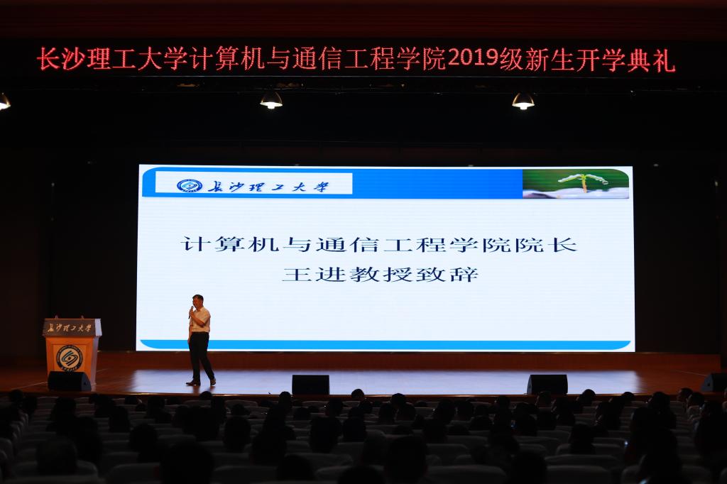 开学典礼上,王进首先向加入长理计通学院大家庭的新生们表示了由衷的祝贺与欢迎,并向新生提出了做一个“自强自立,自尊自爱,广泛游历,敬畏知识,脚踏实地”的计通人的要求,勉励同学们要对自己有一个清晰的认知,不蹉跎大学时光,努力学好专业知识,全方位的提升能力,为将来步入工作岗位贡献社会打下坚实基础。