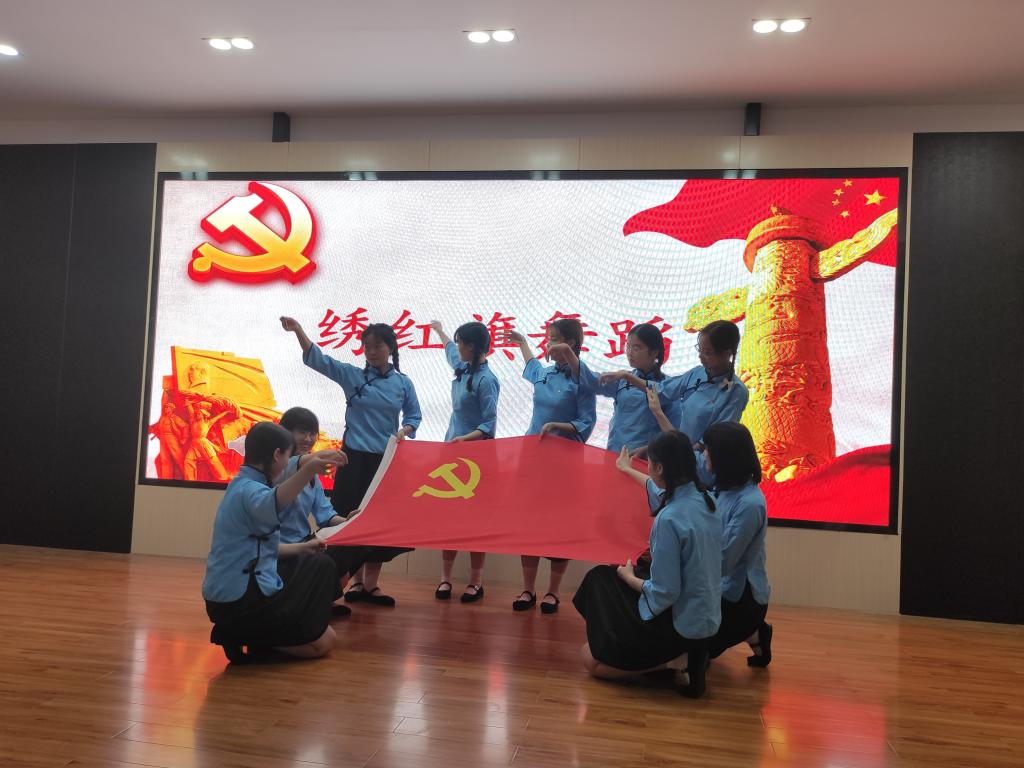 6名学生党员《走近七月》的朗诵,拉开展演活动序幕,他们声情并茂地回顾了党的历史,歌颂了党的光辉历程,表达了对党的伟大前途的憧憬,并带领党员同志们重温入党誓词,重温自己的初心与使命。本科生第一党支部女生党员带来了《绣红旗》舞蹈,她们以优美的舞姿,讲述那些红旗、党旗紧紧相连的高光时刻与动人故事,表达了对祖国的热爱,对党百年生日的赞美与歌颂。2020级研究生党支部全体党员同志合唱《唱支山歌给党听》《歌唱祖国》将活动推向了高潮,展现了青年党员应有的热血与活力。活动现场还展播了“百年党史人人讲”活动部分优秀视频作品,通过教师、学生党员自拍、自导、自演的视频作品,带领党员们重温了党的活动过程中,学百年历史,进一步坚定了学生党员的信仰与追求。