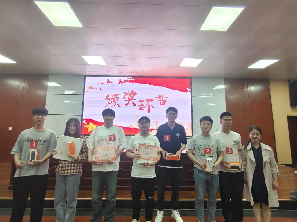 比赛现场各支队伍斗志昂扬、精神饱满;各代表队的选手思维敏捷、对答如流,现场气氛紧张热烈。场外连线环节点燃全场热情,附加风险赛的激烈追逐将比赛氛围推向高潮,师生共同合作,攻克难题。所有参赛队伍以丰富的知识储备量和临危不乱的胆识展现出了积极向上、奋发有为的良好精神面貌和扎实的学习成果。最终,本科生第二党支部获得一等奖,本科生第一党支部、21级研究生党支部获得二等奖,本科生第四党支部、22级研究生党支部获得三等奖。梁睿、陈嘉铭、熊艺舟等三人荣获优秀个人奖。随后参赛选手和评委合照留念。