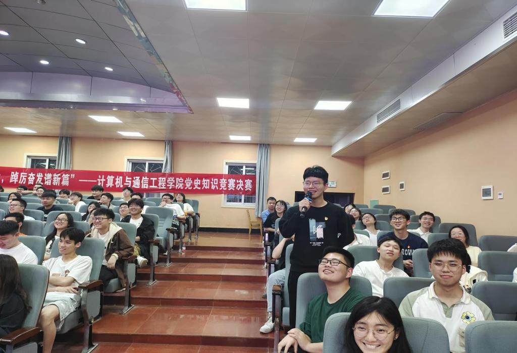 为引导计算机与通信工程学院广大党员深入学习贯彻党的二十大精神,提高党员政治素养,与时俱进学习党的理论知识,计通学院师生党员主题党史知识竞赛决赛于4月23日晚在金盆岭校区四号教学楼报告厅举行。计通学院党委副书记王觊婧出席本次活动,计通学院各学生党支部书记、全体学生党员参加本次活动。
