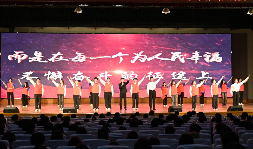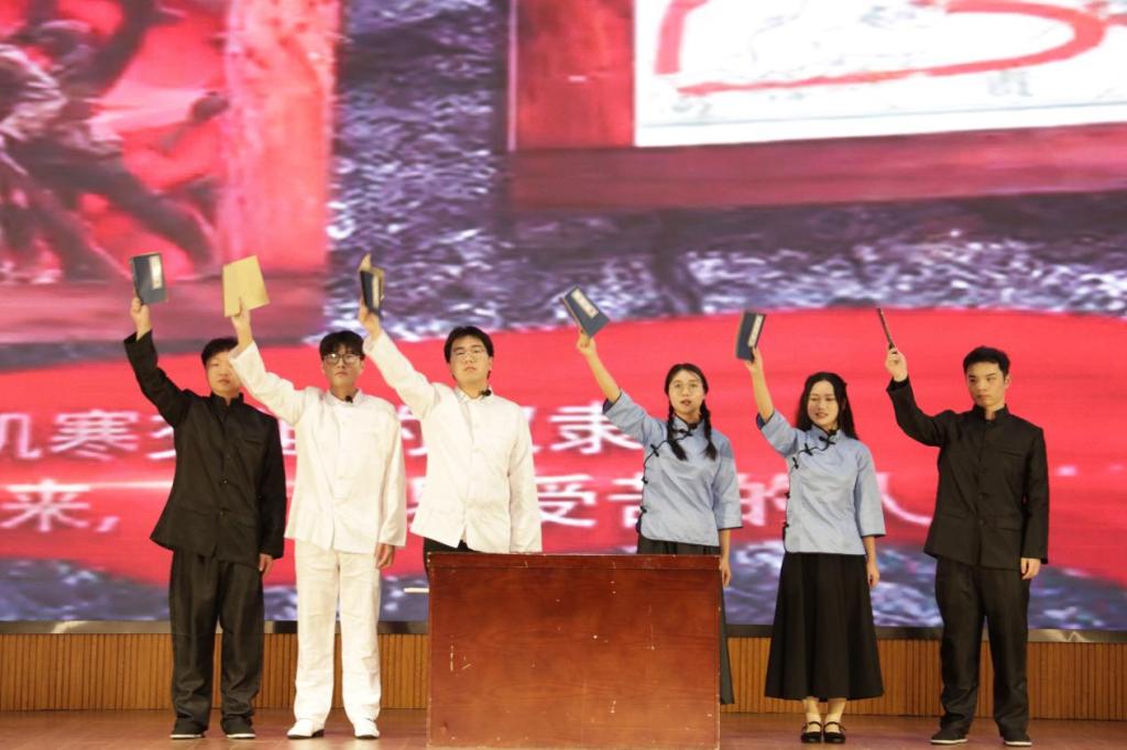 在党员汇报展演部分,节目内容丰富多彩,将党务工作与文化艺术巧妙融合,为观众带来了一场视听盛宴。节目包含朗诵、合唱、情景剧等多种形式,主题涵盖党的光辉历程、红色文化传承、时代新人担当等,生动诠释了学生党员对党的忠诚与热爱。其中,《勇松IT志工日志》展现了邹勇松的感人故事,激励着计通学子以他为榜样,弘扬志愿服务精神;《中华复兴路上的青春力量》情景剧深情回顾了党的历史上的重要时刻,激发了现场观众的强烈共鸣;《如愿》大合唱则以激昂的旋律和饱满的热情,展现了新时代青年的责任与担当。