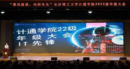 5月17日晚,计通学院在金盆岭校区5教大礼堂顺利召开2022级本科生年级大会。本次会议以“乘风破浪,向阳生长”为主题,院党委副书记王觊婧、22级辅导员唐菲楠出席,22级辅导员余泽宇主持,2022级全体本科生参会。