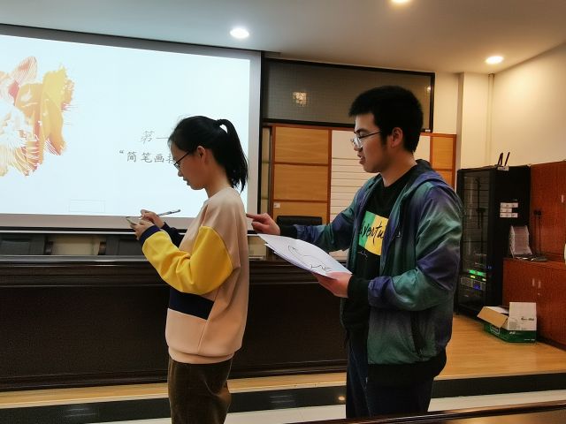 活动伊始,主持人简单介绍了活动背景及活动流程。本次活动包括四个环节,分别是“简笔画接力”小游戏、“你笑起来真好看”杯子舞、“暗示效应”心理小实验和PSTR心理压力测试。第一个环节是“简笔画接力”小游戏。两人一组,其中一人手拿一张A4纸,另一人在其背上用手指进行简笔画创作,前一位同学根据一笔一划的感受将简笔画在A4纸上呈现出来,最后对比每组成员的作品。游戏过程中同学们欢笑不断,在默契配合中走近彼此,在思维的碰撞中激扬青春。第二个环节是“你笑起来真好看”杯子舞,大家通过观看视频教程,学习“你笑起来真好看”杯子舞并进行自由练习。“你笑起来真好看,像春天的花一样……”以扣杯声作为伴奏,融入拍掌、敲桌增强节奏感。在调节情绪的同时还可以有效锻炼手脑协调性。同学们随着美妙的音乐,利用手中的杯子、通过集体的配合演奏出一段非常美妙的音乐,杯子在空中划出炫彩的弧线,让大家在轻松愉悦的节奏中感受律动,感受团体的力量。第三个环节是“暗示效应”心理小实验,同学们根据引导词感受身体的变化,最后效果越显著的表明越容易受到心理暗示。引导学生们在生活中,学会积极的自我暗示,帮助学生增强自信与自我效能感,从而更有信心和勇气去面对挑战与难题。最后一个环节是PSTR心理压力测试,同学们用10-20分钟的时间完成PSTR心理压力测试量表,并对照测试结果了解自己的压力情况。引导同学们面对压力与选择、挫折与否定,学会了解自己、接纳自己,排解危机,懂得在不断的坎坷中成长是我们的必经之路。